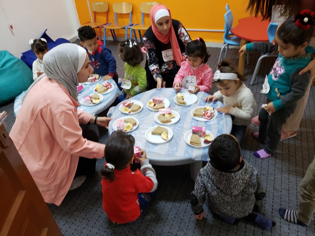 Several CRP employees in the meditation circle that morning spend three days a week at CRP’s newest community center in downtown Amman trying to help one of the most neglected groups in Jordan: refugees from Somalia, Sudan and Yemen (S, S and Y). That’s where DACF’s support comes in. CRP’s theory of change is to support the most vulnerable S, S and Y refugees with food vouchers worth about $50 in hopes they come to the center to take classes that help heal deep seated trauma, increase their knowledge of English or give them a break by providing preschool (see below) or a chance for their children to play or engage in kickboxing. CRP estimates about 1 in 3 families receiving emergency food assistance eventually enroll in programs.