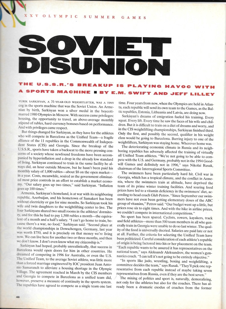 I helped Sports Illustrated writer Ed Swift with this story before the 1992 Barcelona Olympics.
